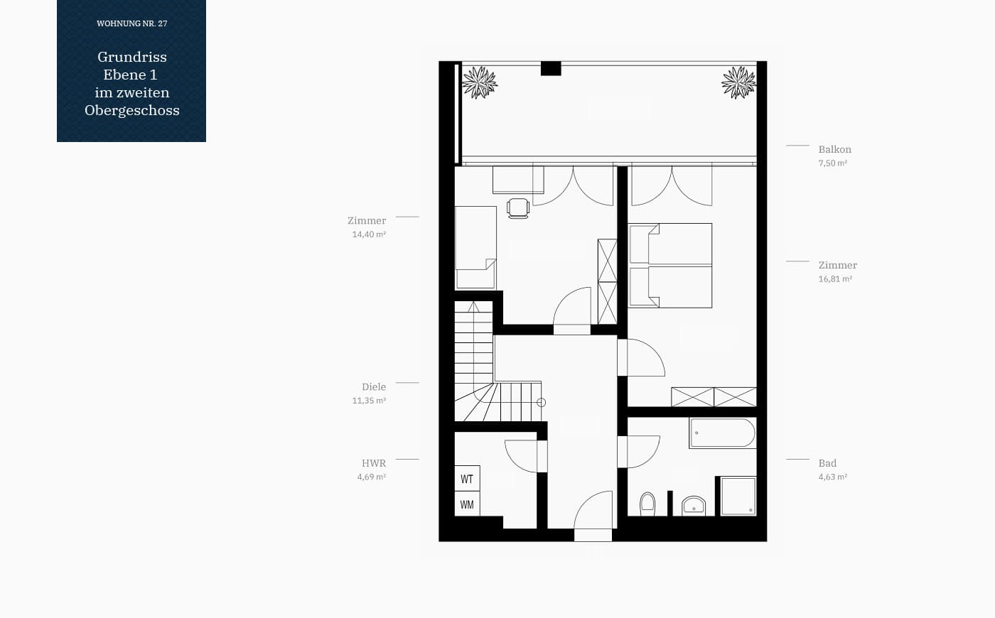 Maisonette-Wohnung Nr. 27 Gesamtwohnfläche ca. 140,81 m²